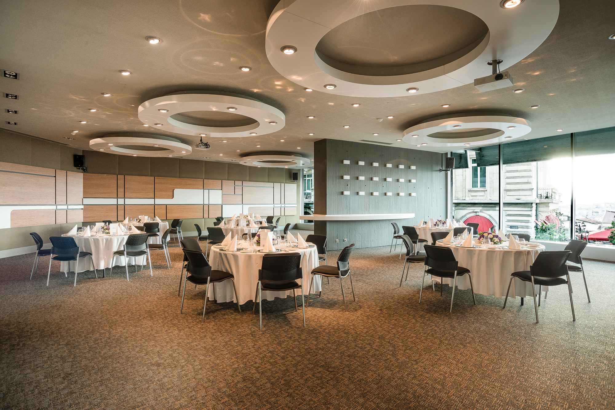 - Конференц-залы: 6 залов, вместимостью до 500 человек, полностью оборудованы современными аудиовизуальными системами и обеспечены высокоскоростным Wi-Fi.